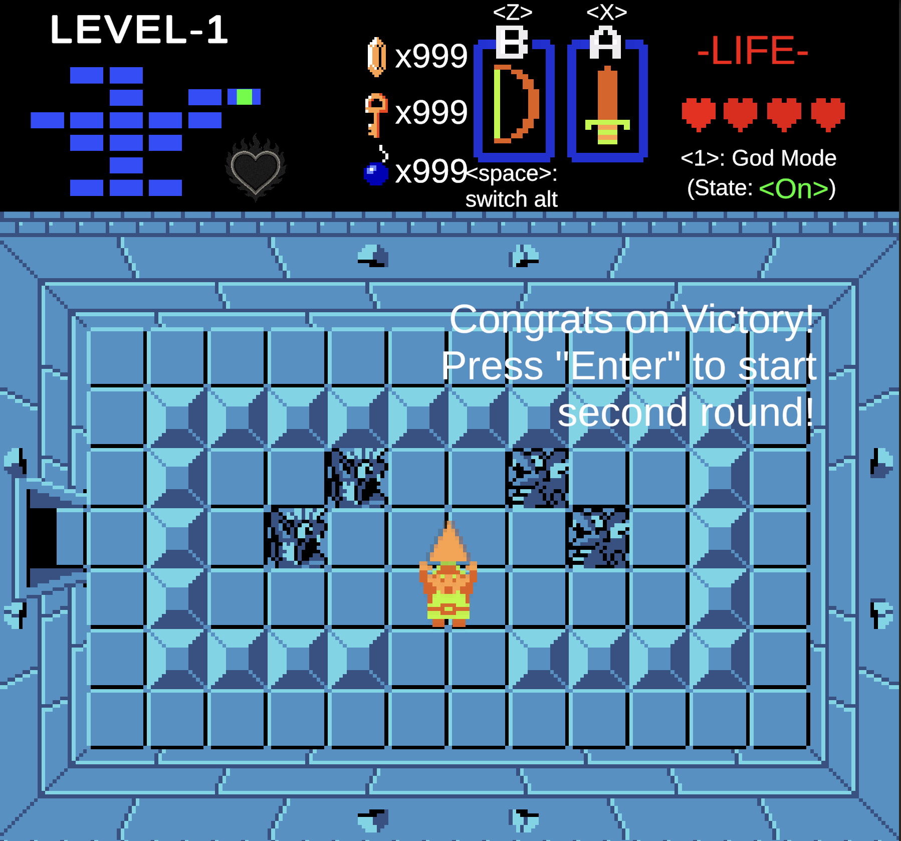 This project is a recreation of the dungeon portion of the classic pixel-based NES game The Legend of Zelda (1986) , enhanced with additional rooms and a new player skill feature: the Shadow Master.